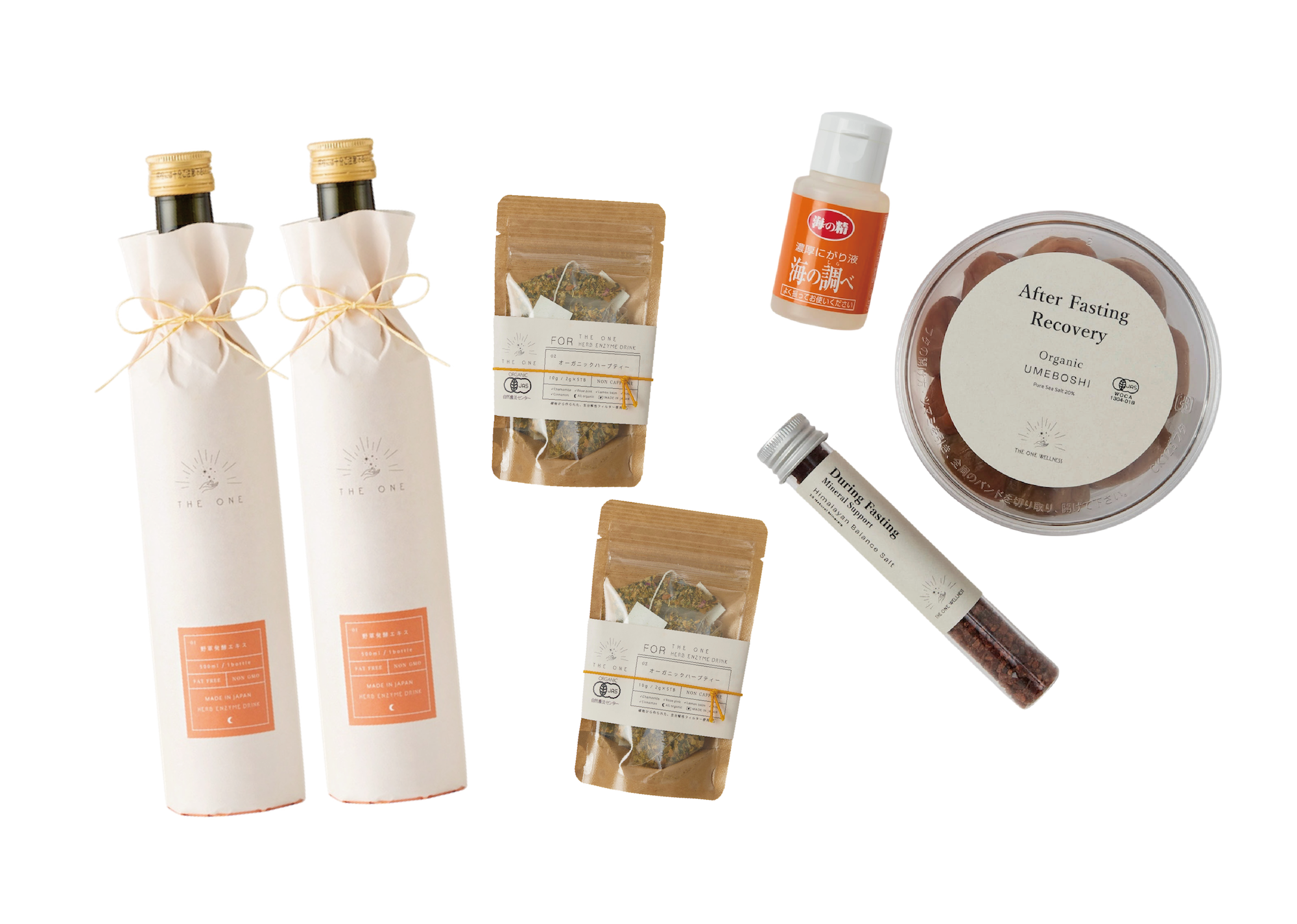 和歌山県産の有機南高梅を、昔ながらの製法で仕上げた、すっぱくてしょっぱい梅干し。原材料は有機梅と天日塩のみで、甘みや旨味を加えず、雑味のないクリアな酸味と塩味が際立つ味わいです。使用するのは、樹上で完熟し自然落下した梅だけ。鮮度の高いうちに塩漬けし、1年以上かけて熟成・天日干しを行っています。表面に塩がふくほどのしっかりした味わいは、ファスティング後の回復期に行う梅流しにも最適。THE ONE WELLNESS代表・三ツ井氏が厳選した一品です。